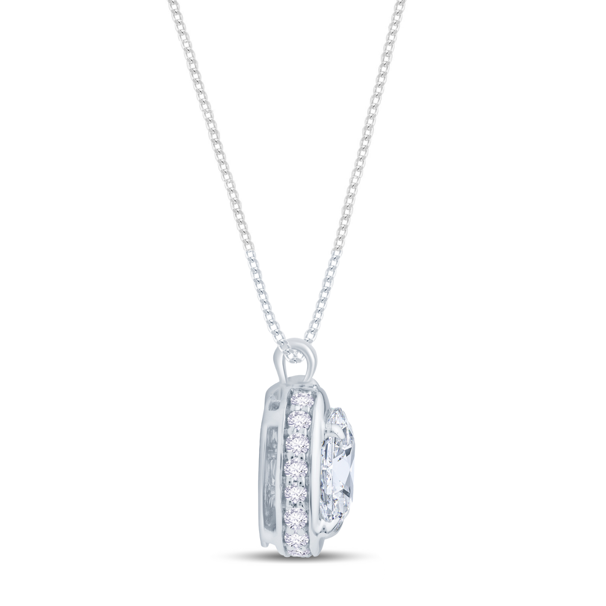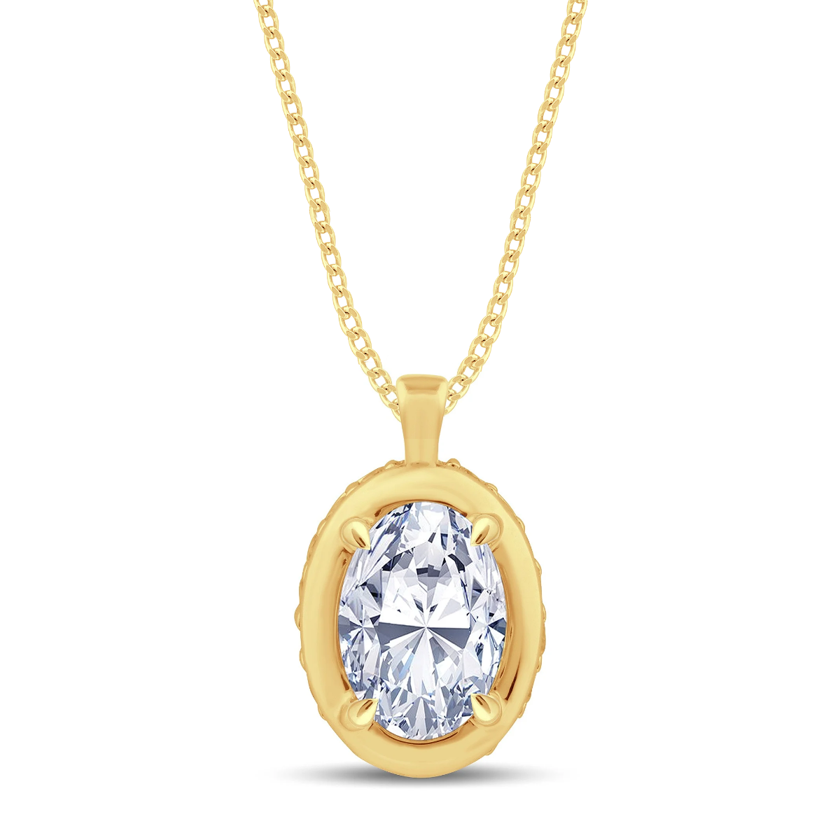 This elegant pendant showcases a laboratory-grown oval cut diamond, set in a minimalist design with a concealed hidden halo visible from the side. It boasts E Colour and VS Clarity diamonds totalling 0.82cts, highlighting exceptional quality and brilliance.