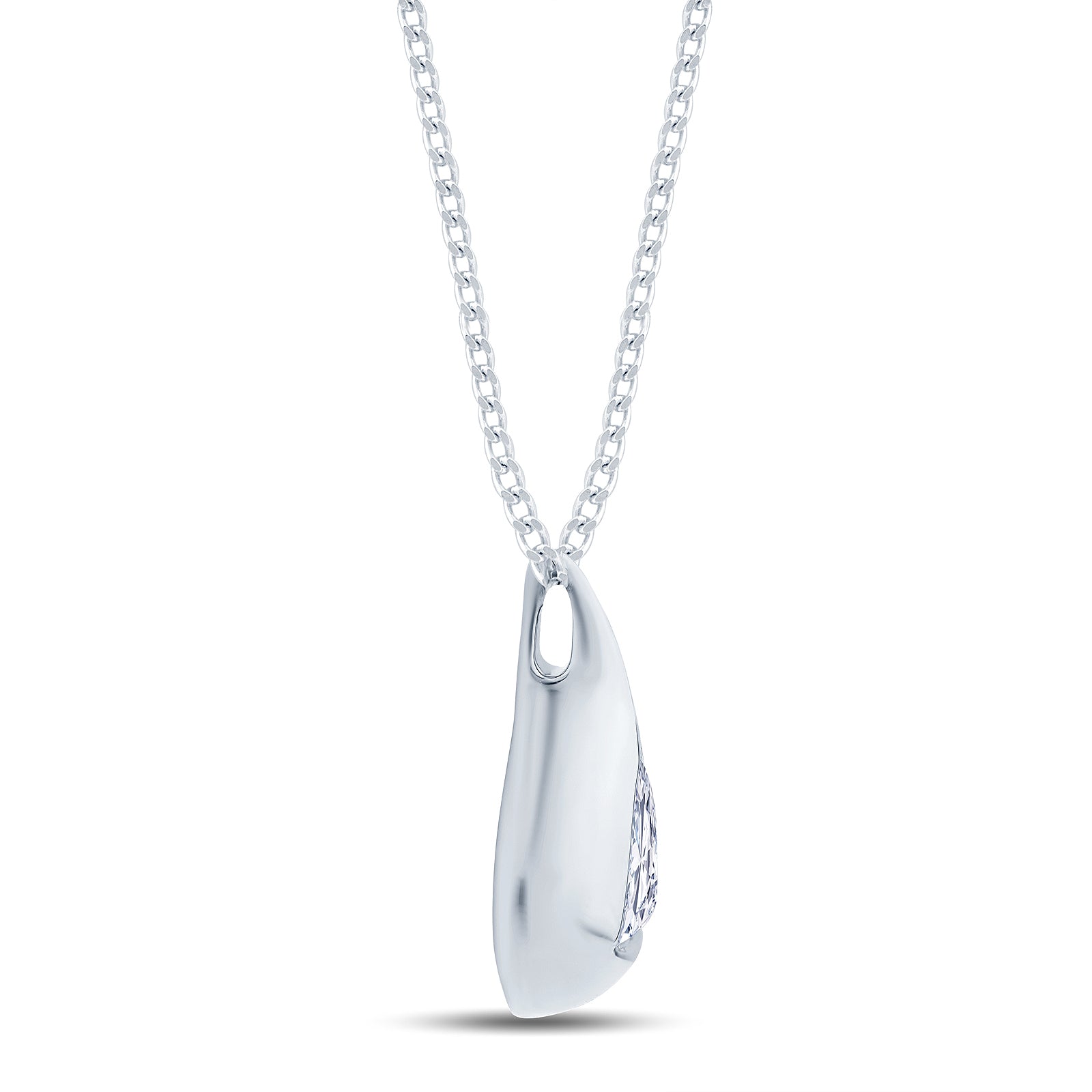 This exquisite 0.50ct laboratory-grown diamond features a trilliant cut and is elegantly mounted in a modern drop-shaped 18ct gold pendant, complete with a matching gold chain.