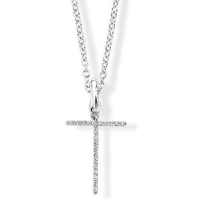 This fashionable and fun 18ct white gold initial T pendant is set with approximately 0.07ct diamonds. Measuring approximately 12mm x 20mm it comes with an 18 inch chain.
