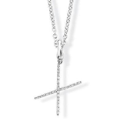 This fashionable and fun 18ct white gold initial X pendant is set with approximately 0.07ct diamonds. Measuring approximately 10mm x 20mm it comes with an 18 inch chain.