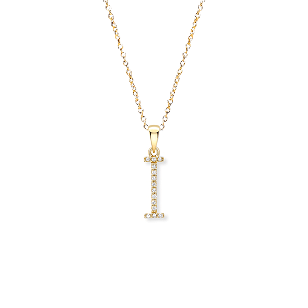 This fashionable and fun 9ct yellow gold initial I pendant is set with approximately 0.04ct diamonds. Measuring approximately 7 x 18mm it comes with an 18 inch chain.