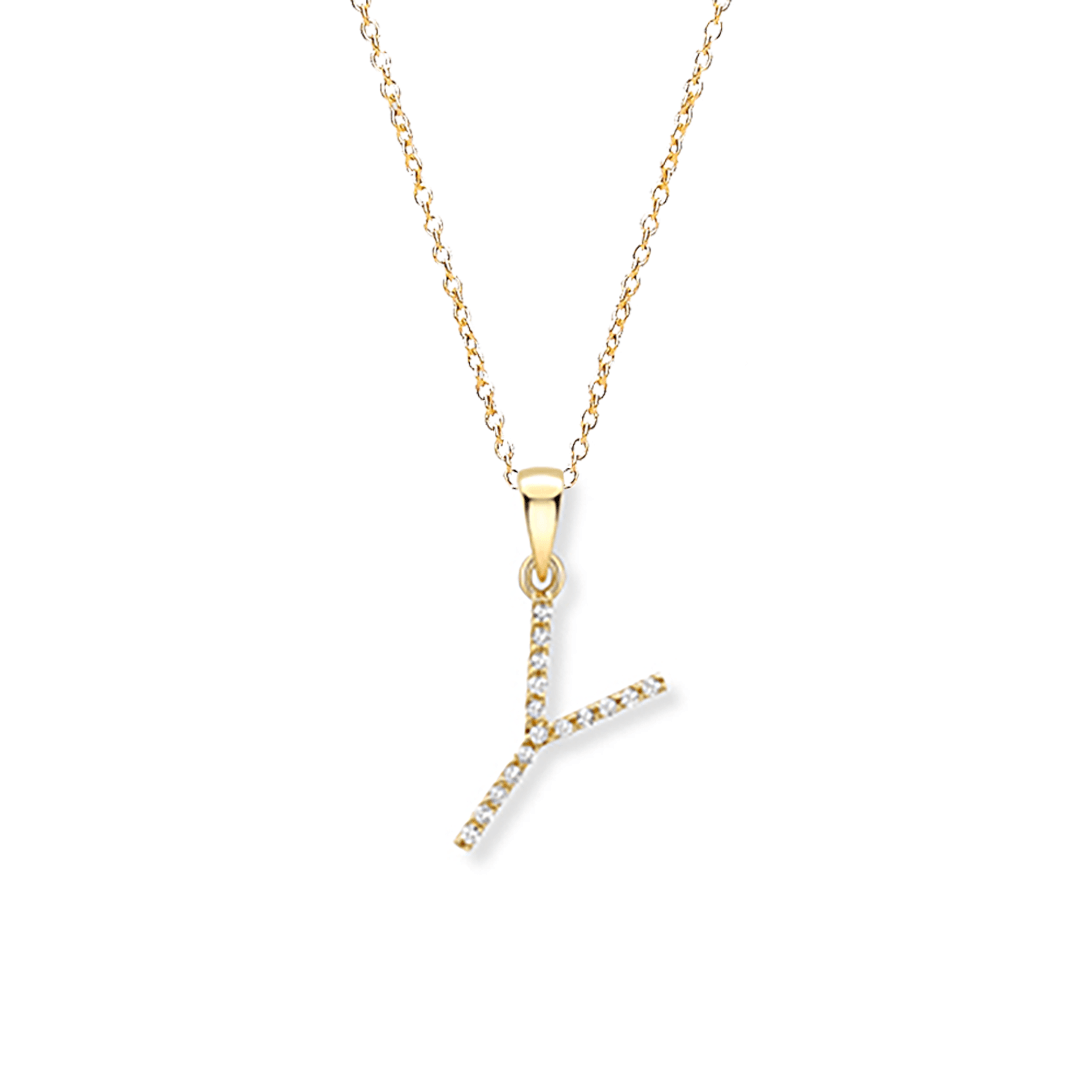 This fashionable and fun 9ct yellow gold initial Y pendant is set with approximately 0.04ct diamonds. Measuring approximately 7 x 18mm it comes with an 18 inch chain.