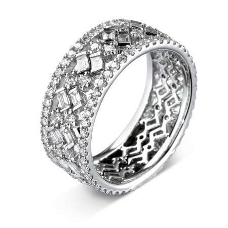 This is beautiful platinum stacker style ring is set with sparkling brilliant and baguette cut diamonds, with a 1.50ct total carat weight.