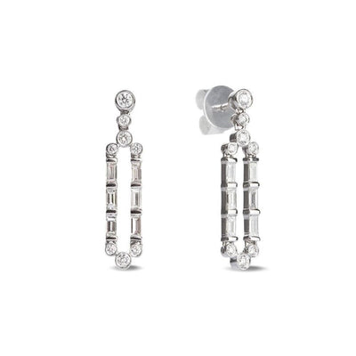 18ct White Gold 0.81ct Brilliant / Baguette Cut Diamond Drop Earrings