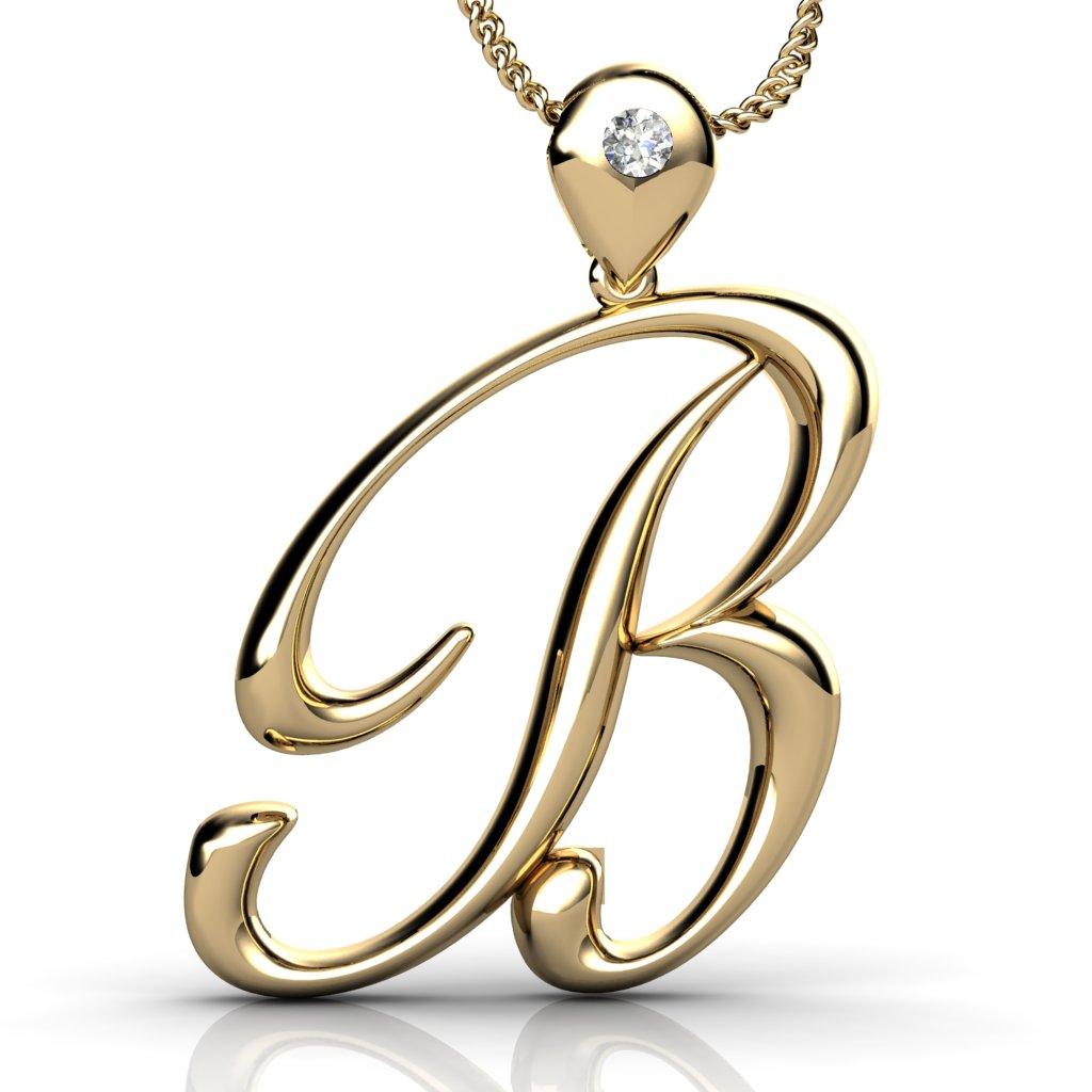 This gorgeous Initially Yours B pendant and chain is designed and manufactured in our own workshop. The pendant loop is invisible set with a sparkling 0.015ct round brilliant cut diamond and carved on the reverse is a tiny intricate heart. The chain is an 18" spiga style which sets the pendant off beautifully, in the metal of your choice.