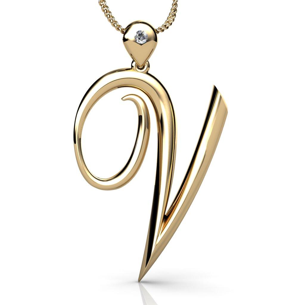 This gorgeous Initially Yours V pendant and chain is designed and manufactured in our own workshop. The pendant loop is invisible set with a sparkling 0.015ct round brilliant cut diamond and carved on the reverse is a tiny intricate heart. The chain is an 18" spiga style which sets the pendant off beautifully, in the metal of your choice.
