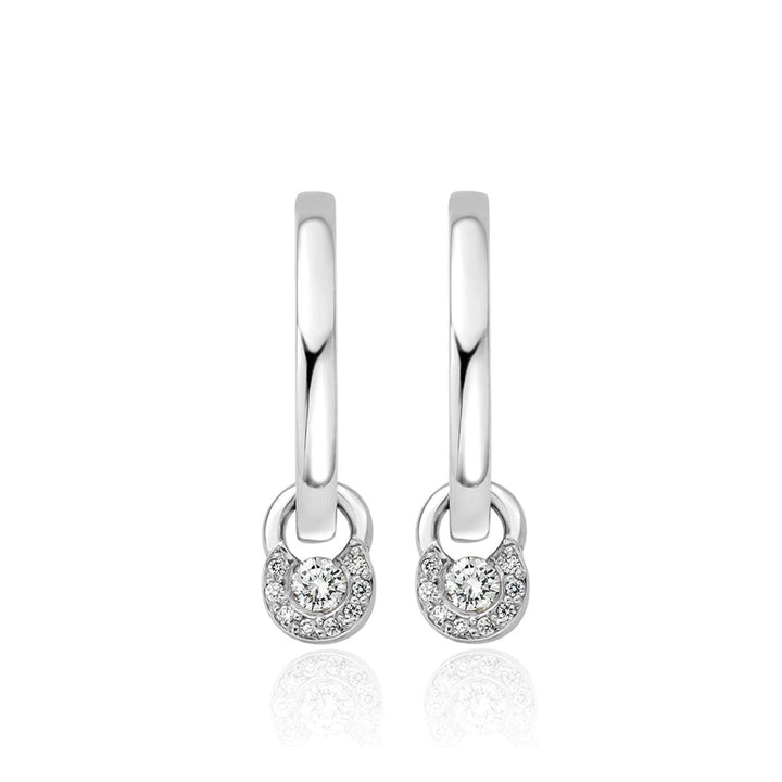 These elegant hoop charm style earrings are set with sparkling brilliant cut diamonds, with a total carat weight 0.15ct in the colour of your choice. A perfect gift for that special person in your life.