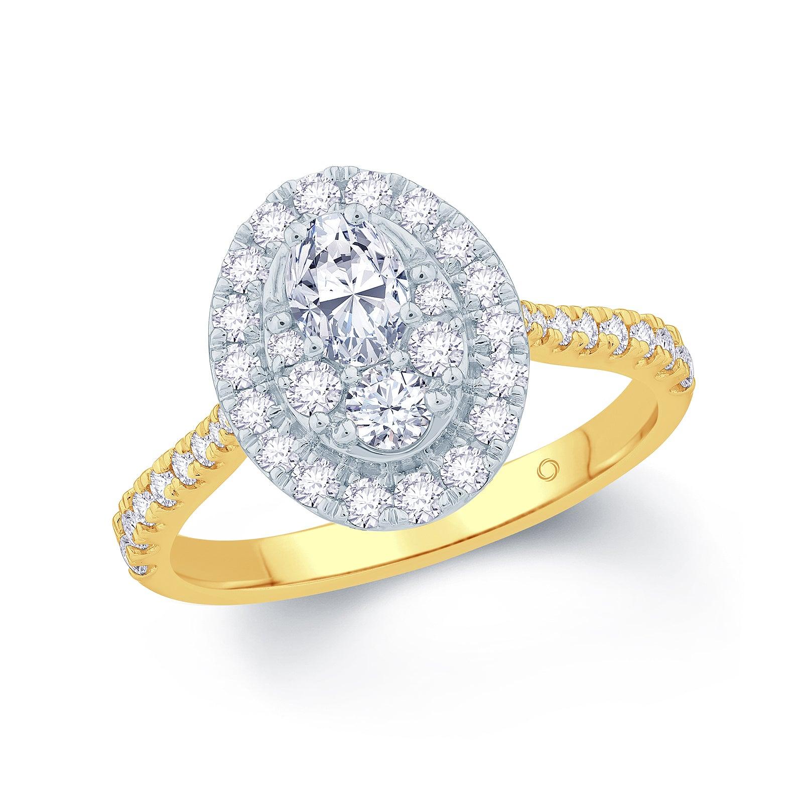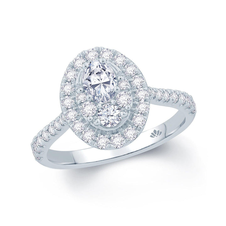 This beautiful platinum engagement ring is set with sparkling brilliant cut diamonds in an oval shaped cluster effect. Accompanied by brilliant cut diamond shoulders, with a total carat weight of your choice.