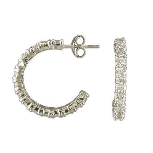 Silver CZ Half Loop Earrings