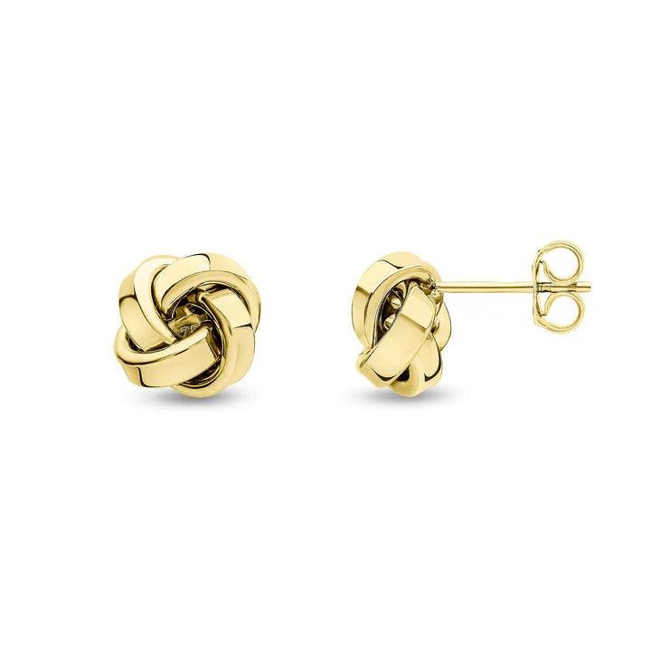 These are stunning 9ct yellow gold polished square shaped knot stud earrings, the perfect give for that special someone.